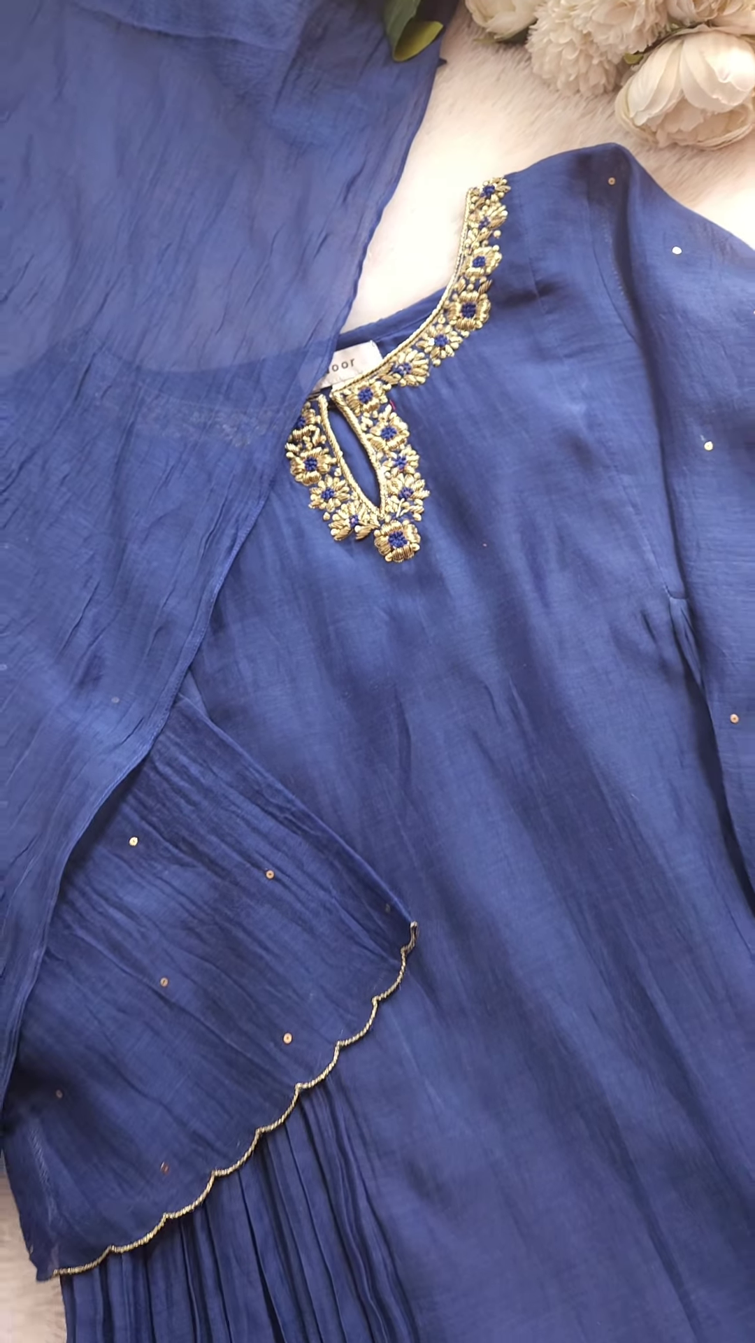 ✅ Elegant embroidered neckline with floral motifs