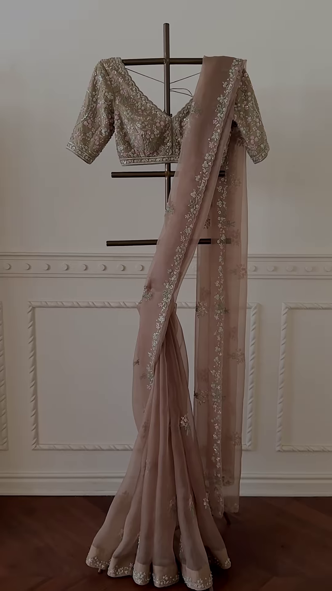Step into elegance with this exquisite mauve net saree, delicately adorned with intricate floral embroidery and shimmering sequin work. The lightweight net fabric drapes gracefully, offering a dreamy and ethereal look. The border is highlighted with fine threadwork and sequin detailing, giving the saree a sophisticated finish.