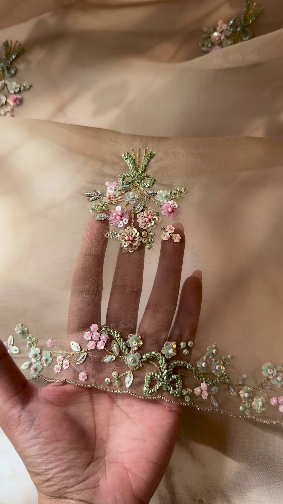 Work: Floral threadwork with sequin embellishments