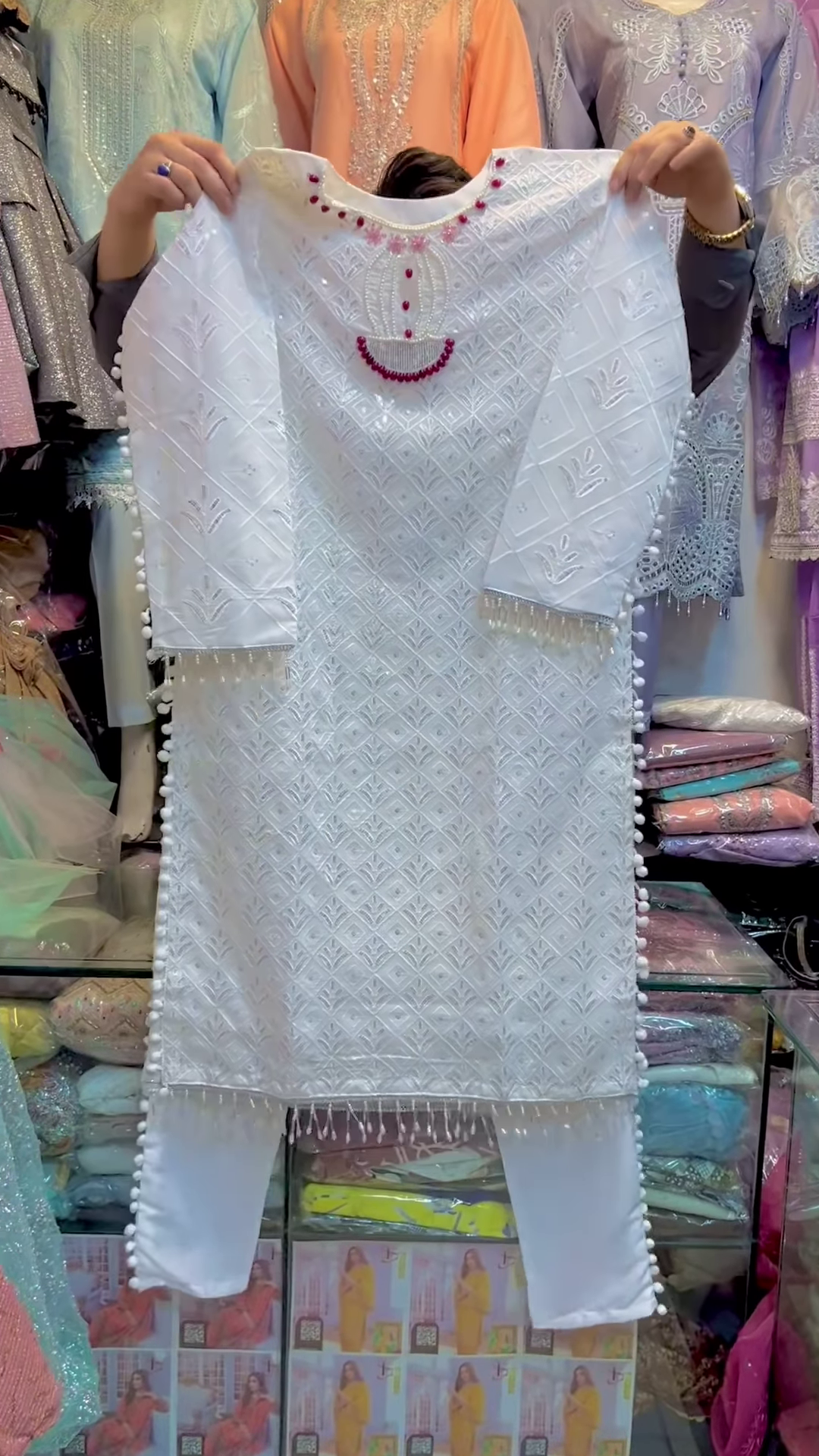 - Work: Exquisite Chikankari embroidery with bead embellishments
