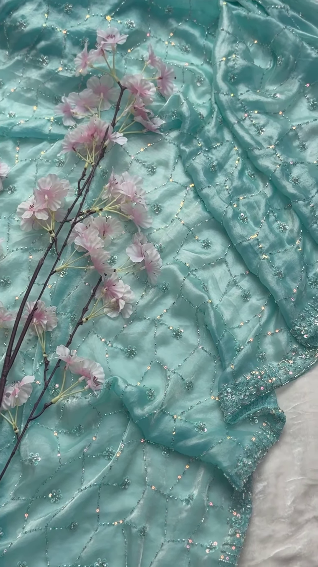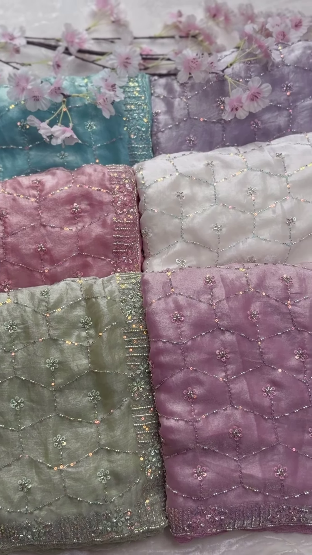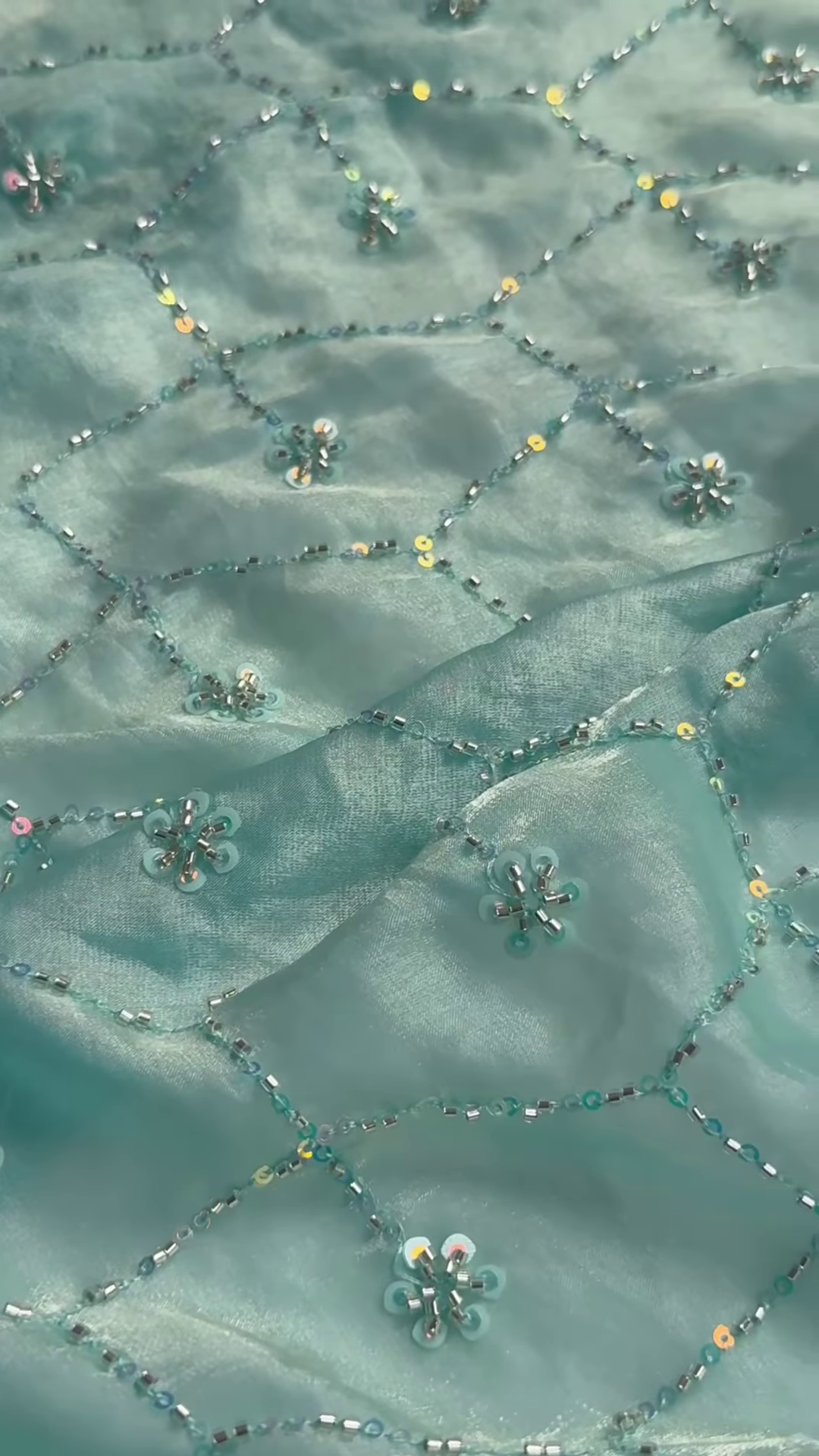 Intricately adorned with delicate floral embroidery, these dupattas feature geometric threadwork patterns that create a mesmerizing effect. Sparkling sequins and beads are carefully hand-stitched to enhance their elegance, catching the light beautifully with every movement.