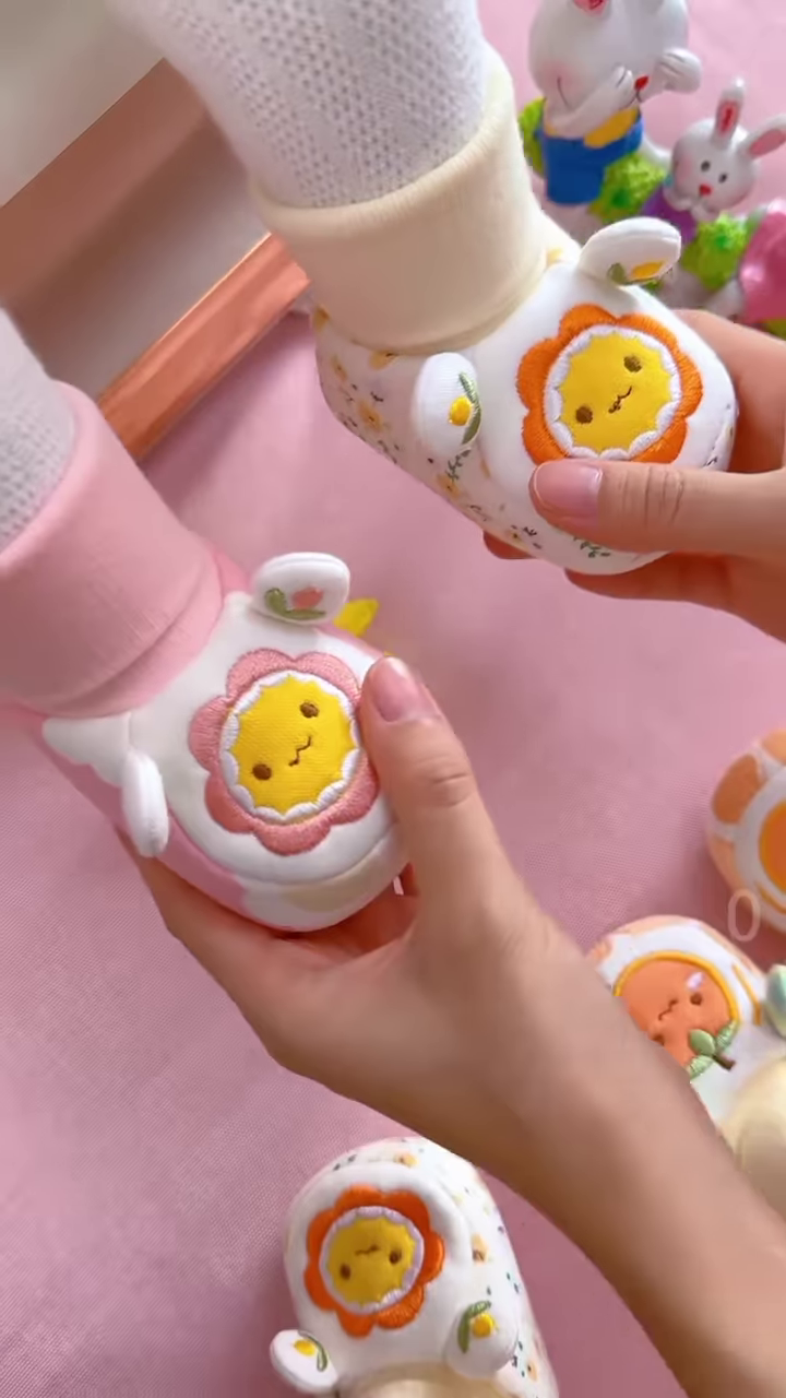 • 🌼 Design: Plush toys with flower-shaped faces + embroidered eyes, blush cheeks, and petal textures
