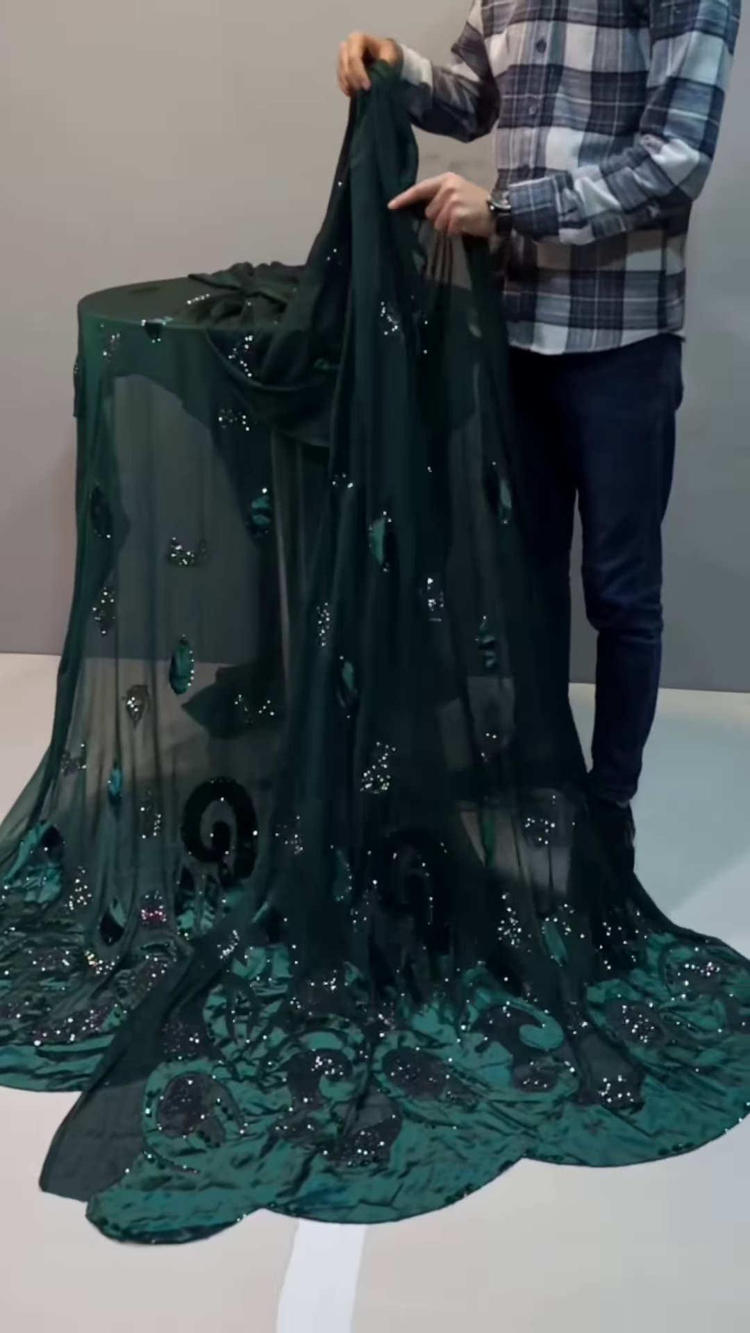 Styling inspiration: Use for yoke panels, sleeve accents, or full-length overlays. Complement it with matte silks, satin linings, or pastel base fabrics to balance texture. Accessorize finished garments with metallic heels, statement earrings, or layered bangles that echo the embroidery’s glimmer tones.