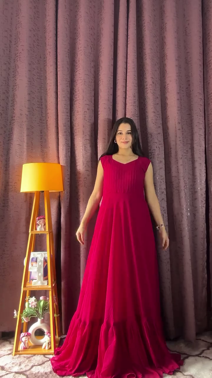 + Free ShippingMake a graceful style statement with this maroon Anarkali kurta, a perfect blend of traditional embroidery and modern elegance. Crafted from flowy fabric, the kurta features a flattering Anarkali silhouette that enhances your look with effortless charm. The neckline is designed with subtle pleated detailing, while the golden floral embroidery along the yoke and sleeves adds a festive touch.