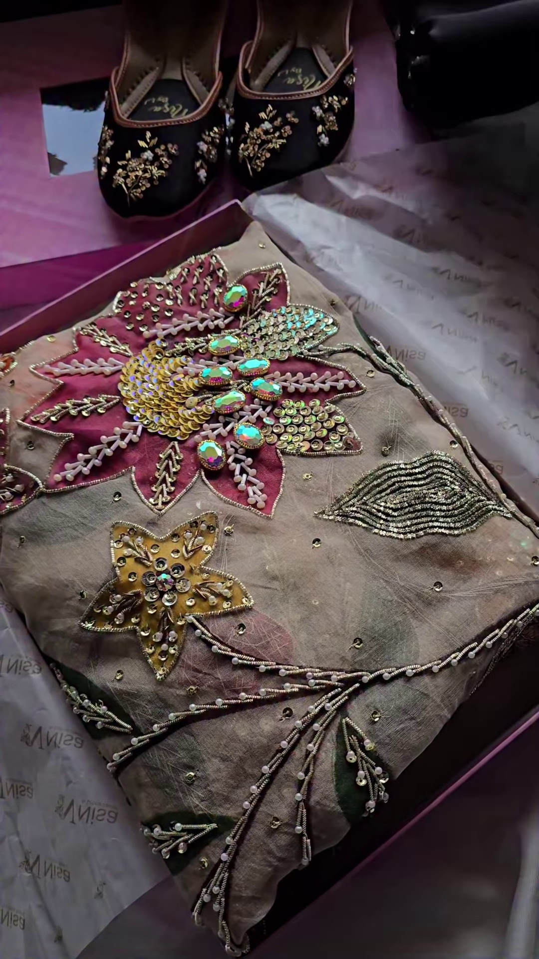 Coordinated Sophistication: Comes with matching hand-embroidered juttis for a complete look.