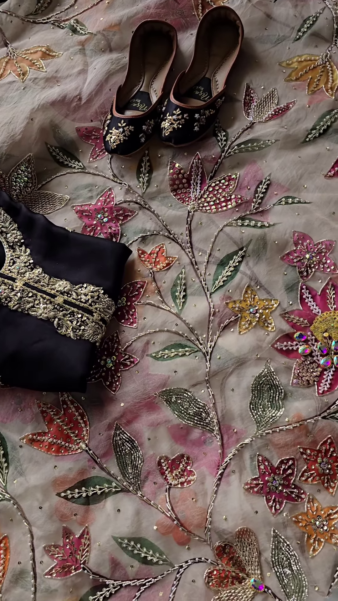 Artisan Embroidery: Handcrafted gold embellishments with dazzling sequin details.