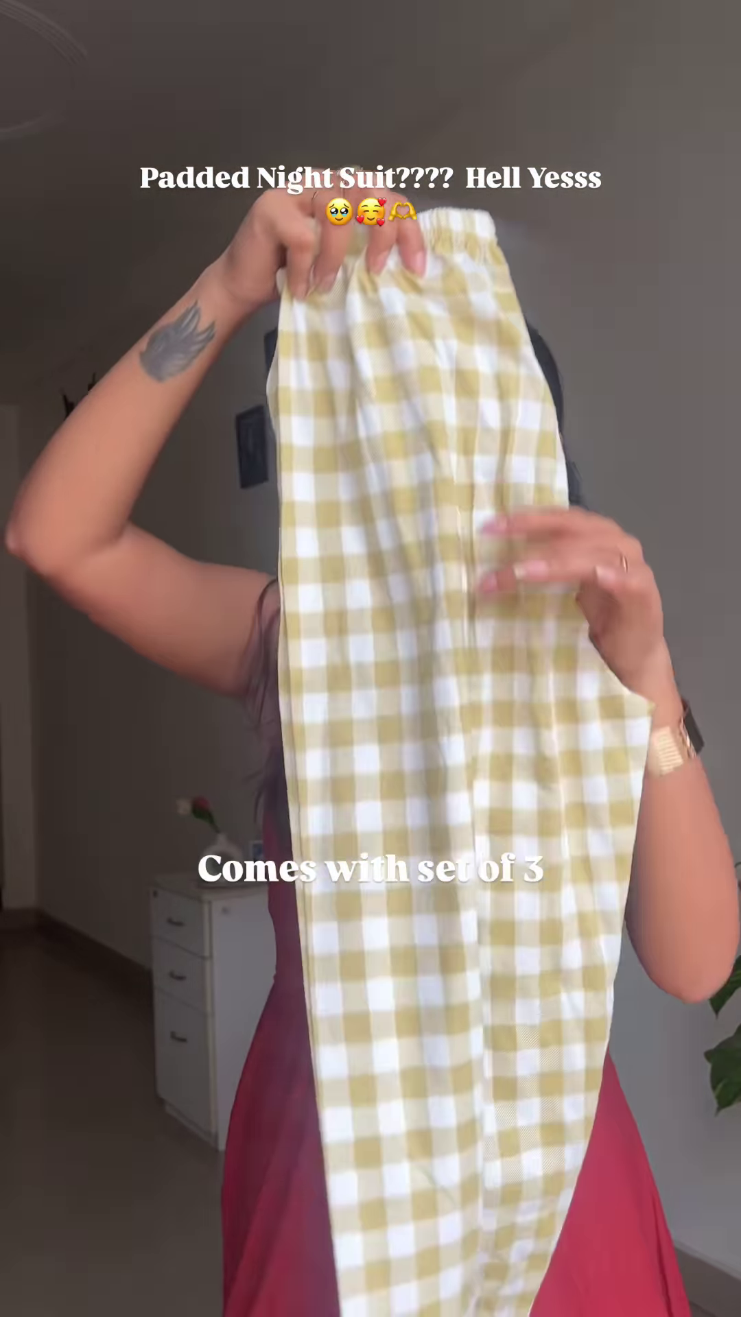 Say goodbye to uncomfortable sleepwear and hello to your new bedtime favorite – the padded cotton night suit in charming yellow gingham check. This co-ord nightwear set blends comfort, practicality, and cuteness in the most effortless way possible. With its built-in padded layer, you can sleep or lounge without needing an inner, making it a hassle-free go-to for warm-weather nights or lazy weekends.