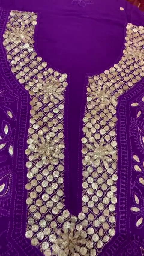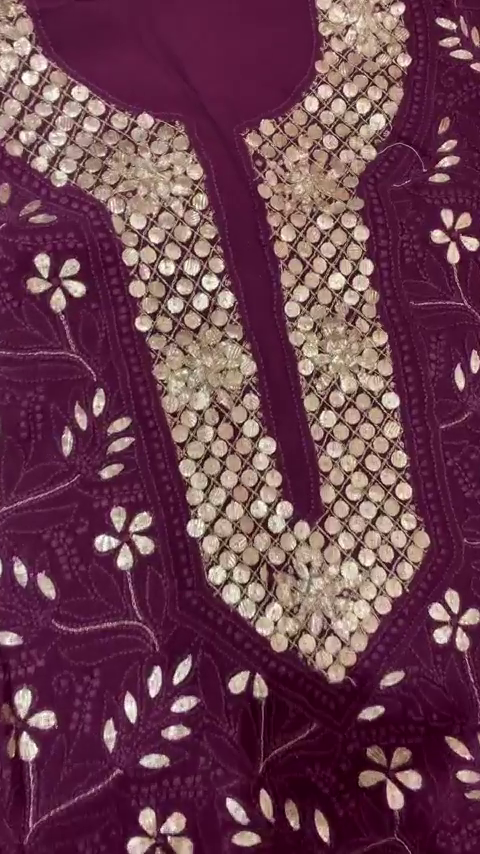 In a deep and elegant shade of royal purple, this kurta is an epitome of grace and sophistication. The silver mirror work adds a striking contrast, creating a dazzling effect that catches the light beautifully. The floral embroidery further elevates its charm, making it a perfect blend of tradition and modernity. -