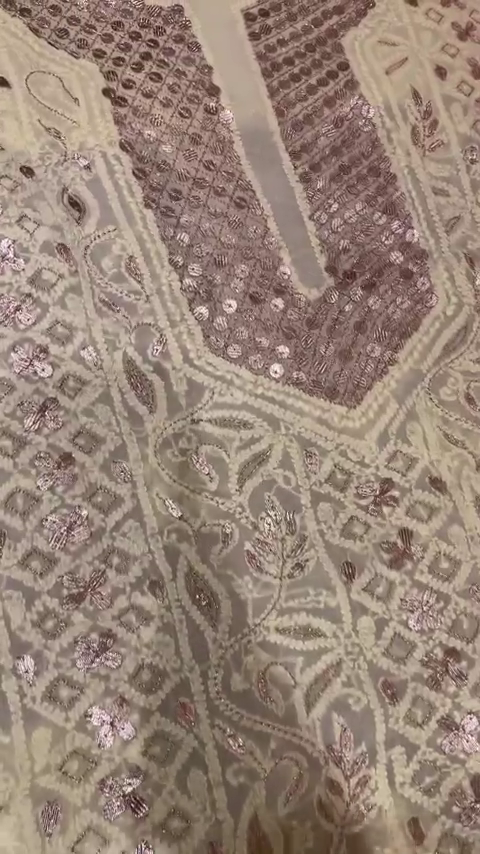 Intricately designed with delicate floral threadwork and adorned with shimmering mirror embellishments, this kurta radiates opulence. The detailed embroidery on the neckline and front panel enhances its regal appeal, making it a true work of art. -